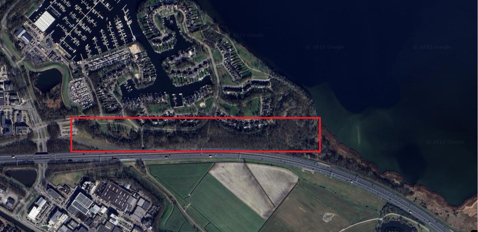 Plangebied voor de Zonnegeluidswal Naarderbos (JPG, 389 kB)